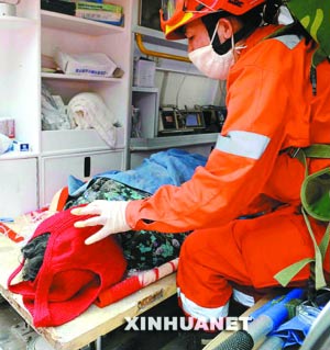 “164個小時!”昨日上午10時30分許,在北川縣城內,一名國家地震災害緊急救援隊員興奮地說,他們將一名被困廢墟下老人成功救出,這是目前震后在廢墟中存活時間最長的老人。