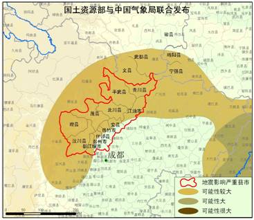 地質災害預報:預計,今天白天到夜間,四川震中附近地區以及重慶東北部等地發生地質災害的可能性較大,其中,重慶東北萬州等地的局部地區發生地質災害的可能性大。請當地居民和搶險救災人員注意防范降雨和余震引發的地質災害,尤其要注意防范余震可能引發的崩塌、滑坡、泥石流等災害。