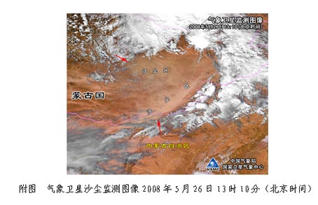 據監測,昨天(5月26日)下午至今天早晨,受蒙古氣旋和冷空氣的共同影響,內蒙古中部和東部偏南地區出現了大范圍的揚沙和沙塵暴天氣,其中,二連浩特能見度只有400米,蘇尼特左旗和那仁寶力格能見度同為600米,烏拉蓋、東烏珠穆沁旗、蘇尼特右旗、阿巴嘎旗和克什克騰旗能見度為700-800米。