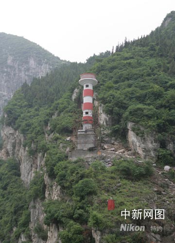 圖為巫峽航道上正在興建的大型塔標(biāo)。