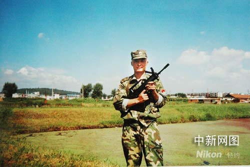 張鵬在軍營里的照片。
