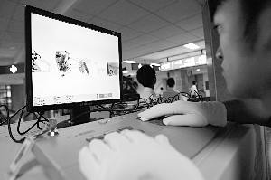 X光檢測(cè)機(jī)的屏幕上顯示出乘客包裹中的物品。 本報(bào)記者 王申 攝