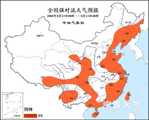 中新網8月12日電 據中國天氣網消息,中央氣象臺今晨六點鐘繼續發布強對流天氣預報稱,東北江淮江南華南等地部分地區將有雷電天氣。