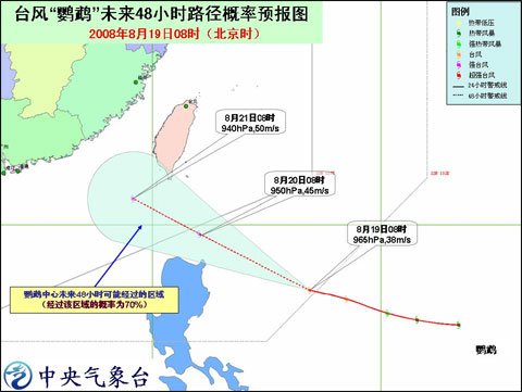臺風(fēng)“鸚鵡”未來48小時路徑概率預(yù)報圖