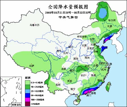 22日20時至23日20時,新疆北部的局部地區、西藏大部、青海南部、內蒙古東北部、東北地區大部、江淮南部、湖北東部、江南大部、華南、四川西部、重慶南部、貴州、云南西部和東部部分地區、臺灣等地有小到中雨或雷陣雨,其中,吉林東部、福建東南部、廣東大部、廣西東部等地有大雨或暴雨,廣東西部沿海部分地區有大暴雨或特大暴雨,上述部分地區并將伴有短時雷雨大風等強對流天氣。內蒙古東部、東北大部、山東東部等地有4~6級偏北或偏南風;渤海、黃海、東海有6~7級、陣風8級偏北或偏南風,臺灣海峽、南海中北部、廣東沿海、福建沿海有7~9級大風。
