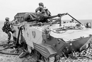 剛一落地的傘兵不待收傘,便手持重裝尋找器準(zhǔn)確定位各自的重裝位置,并奔跑而去,立即展開解脫重裝工作!此時(shí),對(duì)面山頭上的反空降裝甲部隊(duì)已浩浩蕩蕩向下俯沖,對(duì)尚未集結(jié)的空降部隊(duì)形成圍殲。危急關(guān)頭,傘兵戰(zhàn)車啟動(dòng)開來,與先期進(jìn)入的戰(zhàn)車集結(jié)成戰(zhàn)斗群,向“敵”發(fā)起猛烈攻擊。記者掐表計(jì)算,此次傘降、解脫、集結(jié),形成建制作戰(zhàn)能力的時(shí)間比以往縮短了一半。