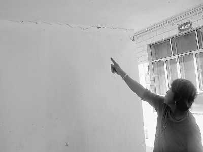 好景不長,新房很快也出現(xiàn)一道道裂縫,村民惶恐不安。在新村采訪時(shí),秦文清、武須信、武旭忠等幾位村民爭先恐后地拉記者去自己家里看墻上的裂縫。村民王改女家的堂屋、臥室、廚房、衛(wèi)生間,幾乎每間房都有大大小小的裂縫,她說住著害怕,可又找不到避難的住所(見圖①)。