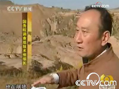 調查組工作人員:不是,這是原始地貌,因為它是軟的黃土作為排場地基,軟就不穩定,所以他沒有注意這個穩定不穩定的問題就往上排,那是特殊地形,一個下雨,上面這個建的干選場往里滲水,其實本來就很軟,地基更軟了,那么上面壓力再一大以后是整體滑動,這個山包,像我們腳底下踩的山包一樣整個滑下來,前面滑進村了,后面又滑到他走的位置,因為黃土梁它自己不穩定,所以它一被擠以后就跟著移動,如果它是很穩定的就不會出現這個問題,排土場地基是什么巖型非常重要。