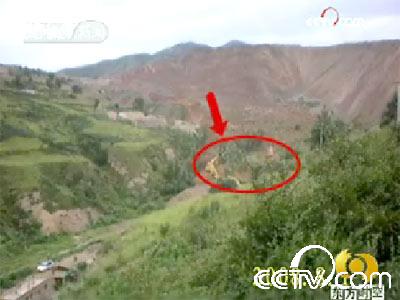 調查組工作人員:很慢,地表移動,地表沒太大變形,在上面還是在上面,像從這過去上面還是草,它不像垮塌那樣的,下面垮了,但是底下整個是蠕動下來,這個大概時間,據他們現場的人說有四五分鐘才能從上面滑到底下。