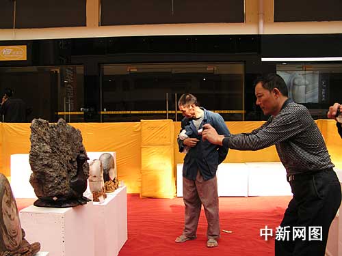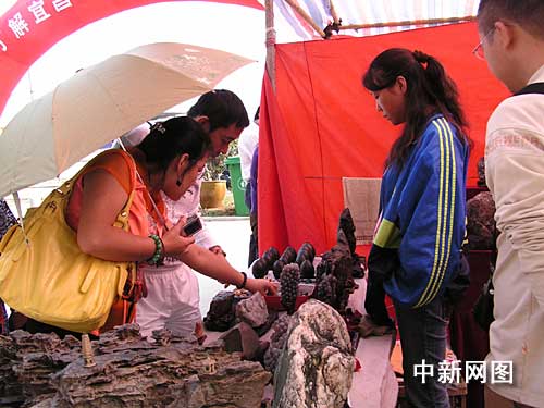 來自全國各地的數千件天然奇石亮相宜昌,圖當地市民拍攝奇石 。 作 者:劉濤
