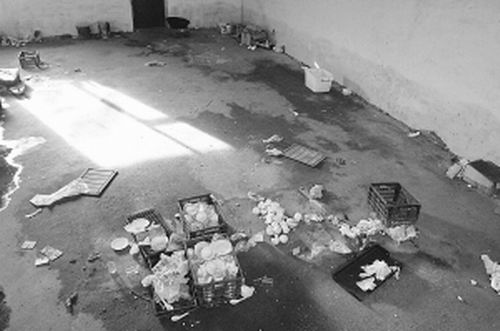 9月9日,記者第二次來到這家餐具消毒廠,記者看到,消毒廠里沒有任何消毒設備,用的都是地下水,室內的水泥地上到處是積水,里面泡著碎骨頭和爛菜葉,有蛆蟲來回爬行,還有許多蒼蠅飛來飛去,塑封好的餐具放在整理箱內。