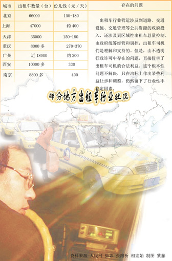據記者了解,目前各地政府對出租車的投放模式有兩類:一是政府通過行政審批的方式控制出租車的總量;一是政府一次性拍賣出租車經營權。第一種模式導致了出租車公司的中間盤剝,也就是出租車司機說的“份兒錢”;第二種模式產生的問題是,政府一次性拍賣了出租車經營權,斬斷中間盤剝鏈條,取消“份兒錢”,但是導致“出租車經營權”的猖獗倒賣,比如,一些地方就出現了原來10萬元從政府處買來,卻60萬賣給其他人經營的事情。
