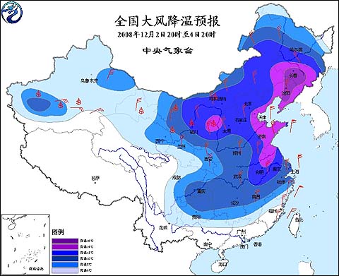 2008年12月2日20時—4日20時全國大風降溫預報圖