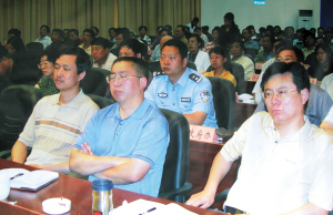 前天上午11點,記者來到科普畫廊前,找到了市民說的“睡覺照”。這是一組關于打擊非法傳銷的宣傳資料。資料包含了云南省各地打擊非法傳銷的成績展示。在這組展示中,有一幅“打擊傳銷專項行動電視電話會議”的圖片,從圖片上可以看出,這次會議是昭通市召開的。而在圖片正中間,有3人正襟危坐,中間一人雙手抱在胸前,眼睛卻是閉著的。就是這么一閉,就引來了多數市民的好奇和觀望?破债嬂忍幵谌顺奔械拇浜,經過的市民很多,不少市民駐足在櫥窗前指指點點,議論著這幅圖片。