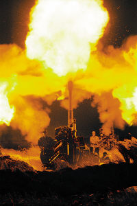 炮群猛烈覆蓋,導彈直指目標,空中戰機呼嘯,電磁打擊波譎云詭。新春時節,蘭州軍區某師依據新大綱,組織聯合火力突擊群在賀蘭山古戰場演繹新戰法。