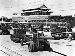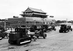 曾參與新中國多次國慶閱兵的北京軍區原炮兵司令部處長張軍告訴記者,開國大典受閱炮兵部隊裝備,全是從日本侵略軍和國民黨軍隊手里繳獲的戰利品,其中參加閱兵的90野炮和38野炮,不僅身管短,兩個輪子有的還是木輪子包鐵皮的。盡管當時我軍武器裝備還很落后,但場面恢宏、壯觀,大氣磅礴,全體受閱將士以昂揚精神狀態、威武雄壯陣容出現在國人面前,并向世界發出了宣言:中國人民解放軍有信心、有能力保衛新生的人民政權!正因為如此,開國大閱兵具有極為重要的歷史意義。
