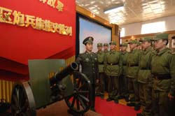 北京軍區某炮兵旅參加了從開國大典到建國50周年慶典的13次國慶閱兵,F任參謀長趙德斌介紹說,該旅組建于1944年3月,經歷過抗日戰爭、解放戰爭和朝鮮戰爭,主要任務是保衛首都安全和實施機動防衛作戰,是中央軍委指定的全軍唯一的迎外炮兵部隊。在開國大閱兵上他們是牽著騾馬炮、拖著戰場上繳獲的‘萬國牌’雜牌火炮通過天安門的。1959年國慶10周年閱兵,這支部隊駕駛的是我國制造的火炮,但隊列中仍然有老式榴彈炮、高射炮;1984年國慶35周年閱兵,這支部隊展示在世人面前的,是清一色我國自行設計制造的包括國產火箭炮在內的機械化方陣。1999年國慶50周年閱兵,這支部隊再次陣容一新,主戰火炮全部更新換代為自行火炮。其中,兩人操作的一門自行火炮,火力足以相比上世紀80年代的一個炮兵連。這種巨大變化表明,我軍建設經歷著一場深刻革命,正由數量規模型向質量效能型轉變,由人力密集型向科技密集型轉變。