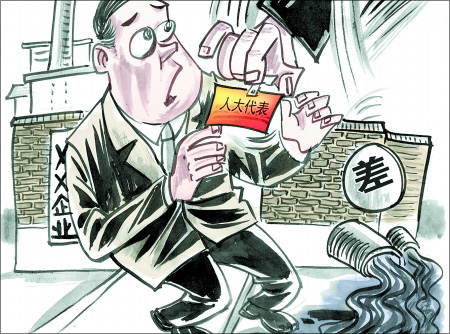輝縣市有一家造紙廠的負責人是新鄉市人大代表,該造紙廠治污設備長期閑置,經常偷排污水,環保部門去檢查時,負責人總是敷衍,由于其特殊的身份,在當地造成了不良的影響。這次對人大代表調研評價時,環保部門給其一個“差”的評語,這位人大代表再次提名時沒能通過。