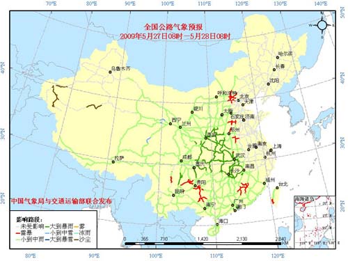 中新網5月27日電 中國氣象局與交通運輸部今日聯合發布“端午節”期間主要公路氣象預報。