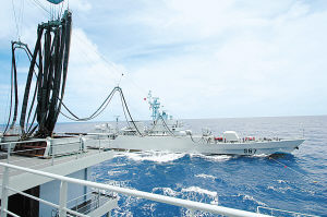 晨曦初照的南沙某海域,天藍海碧,波濤洶涌,一場多艦型、多批次、多數量新型艦艇遠洋綜合補給演練正在進行。連日來,南海艦隊將戰斗艦艇、船塢登陸艦、綜合補給艦、醫療船等多種艦艇拉到遠離岸基千余公里外的南海深處,成功實施遠洋綜合保障演練。