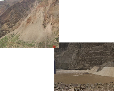 龍開口水電站于2007年9月開工,不到兩年的時間大壩已經(jīng)頗具規(guī)模。主壩開始澆灌水泥。金沙江從導流明渠穿過,原來的河道被截流用于建壩。