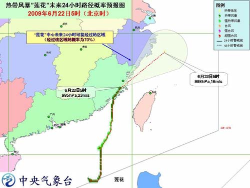 預計,“蓮花”將以每小時15公里左右的速度向東北方向移動,強度逐漸減弱。受其影響,今天白天到夜間,南海東北部海面、臺灣海峽、東海西部海面、廣東東部沿海、福建沿海、浙江南部沿海、臺灣沿海將有7-9級大風,風暴中心經(jīng)過的附近海面或地區(qū)的風力有9級,陣風可達10-11級;巴士海峽、巴林塘海峽將有6-8級大風。臺灣大部、福建南部和東部、浙江南部、廣東東部將有大到暴雨,部分地區(qū)有大暴雨。