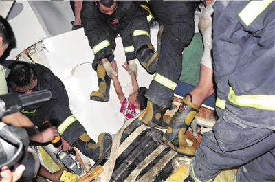 消防官兵用液壓起擴器、撬棍等工具,撐開一些空間,冒著生命危險,采用徒手挖掘等方式,將困在廢墟下的4名群眾救出,其中一人不幸遇難。