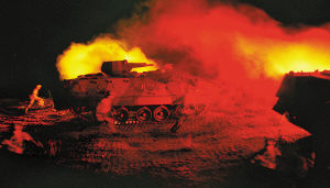 “新大綱規(guī)定,夜訓(xùn)按照年度訓(xùn)練總時(shí)間20%的比例安排。今年,我們著力提高夜間單兵專業(yè)技能的生成和轉(zhuǎn)化。”盛團(tuán)長(zhǎng)話音剛落,伴著隆隆的炮擊聲,夜暗深處火光頻閃。原來(lái),該師新型教練員、二營(yíng)教導(dǎo)員杜文斌正在組織官兵進(jìn)行坦克夜間教練射擊課目訓(xùn)練。眼前景象大出記者意料:目標(biāo)顯示不再是一盞孤燈,而是以打信號(hào)彈、模擬射擊火光和車輛閃爍明滅的燈光等多種方式,大大增加了射擊難度。“敵人射擊炮口一閃,你能不能馬上回敬一炮?我們練的就是這個(gè)!”杜文斌自豪地說(shuō)。