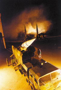 動真格的了!馬小江掏出指北針,指揮部隊開進。當他帶領(lǐng)部隊到達陣地時,距規(guī)定時間只剩下幾分鐘。這一路,他們途經(jīng)3個塌方險要地段,遭遇一次空襲警報,兩次躲避偵察衛(wèi)星臨空……他們的代價是:1輛發(fā)射車在躲避衛(wèi)星偵察時因偽裝不善被“敵”發(fā)現(xiàn),被判“摧毀”。