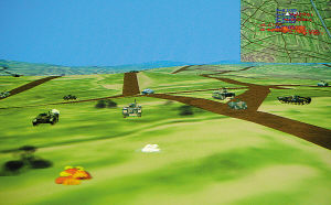 “我們正在組織官兵利用戰術對抗模擬訓練系統開展訓練。”旅長趙立榮告訴記者。為改進裝甲分隊戰術訓練手段,提高按綱施訓質量,該旅與石家莊機械化步兵學院聯合開發了全軍首家裝甲步兵戰術對抗模擬訓練系統。“該軟件系統是以構建1∶1000的戰場地形環境和車輛、人員模型為基礎,所有參訓人員在三維虛擬戰場上訓練,其所聽、所見均與實車在現地作戰時一樣。”