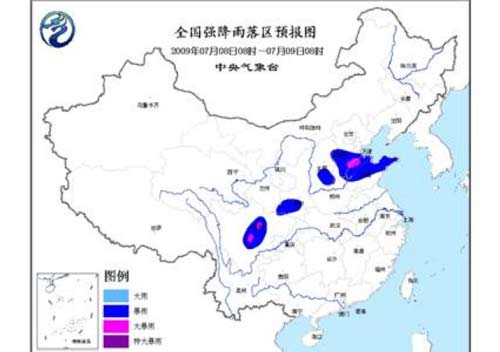 中新網7月8日電 中央氣象臺8日06時發布暴雨橙色警報:預計,今天白天到夜間,川西高原東部和四川盆地西部、陜西南部、山西南部、河北南部、山東中北部和山東半島等地有 暴雨,其中,四川盆地西部、河北東南部、山東北部部分地區有大暴雨。
