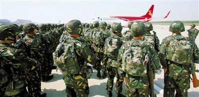 今天(1日)上午11時30分,沈陽桃仙機場,沈陽軍區(qū)某摩步師150名官兵和17臺裝備組成的先期偵察戰(zhàn)斗群,搭乘一架客機和一架貨機向大西北出征。隨后,該師萬人千車將采取鐵路輸送、摩托化開進兩種機動方式跟進,從東北渤海之濱直撲西北賀蘭山麓。至此,“跨越—2009·青銅峽”實兵檢驗性演習正式拉開戰(zhàn)幕。