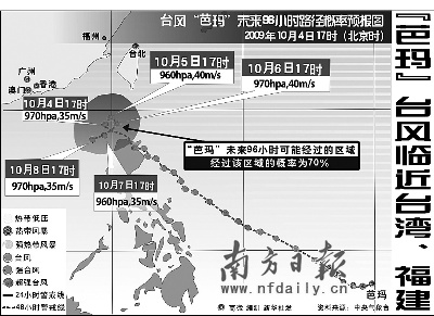 雖然“芭瑪”5日將繼續(xù)在南海東北部回旋少動(dòng),強(qiáng)度變化不大,但由于明天是農(nóng)歷八月十八,天文大潮受“芭瑪”和南下冷空氣的共同影響,5日白天至夜間,巴士海峽、巴林塘海峽、臺(tái)灣海峽、南海東北部和中部偏東海域及臺(tái)灣恒春半島將有7~9級(jí)大風(fēng),部分海域和地區(qū)陣風(fēng)可達(dá)10~11級(jí),“芭瑪”中心經(jīng)過(guò)的附近海域的風(fēng)力有10~12級(jí),陣風(fēng)可達(dá)13~14級(jí);東海、臺(tái)灣以東洋面、臺(tái)灣省沿海(除恒春半島外)、浙江沿海、福建沿海、廣東東部沿海也將有6~8級(jí)大風(fēng),部分海域或地區(qū)陣風(fēng)可達(dá)9~10級(jí);臺(tái)灣大部將有大到暴雨,其中臺(tái)灣東北部和臺(tái)灣恒春半島的部分地區(qū)有大暴雨。