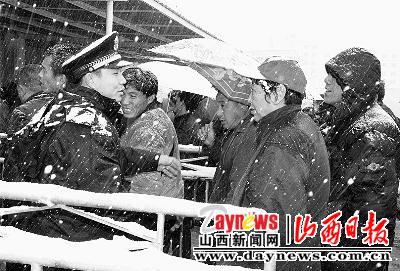11月10日,一場暴雪給出行的人們帶來了不便。太原交警支隊迅速啟動冰、雪、霧惡劣天氣應急預案,全警動員,全員上路,保障人們的出行安全。在大南門崗,太原市公安局副局長、交警支隊支隊長尹喜平在大雪中疏導著,并不時地喊話,提醒大家注意安全。杏花嶺交警大隊對轄區太原市東客站和太原市客運汽車公司駐站管理。古交交警大隊在三岔口和神堂巖執勤點及早安排警力,實施交通管制……(記者曹秀娟)