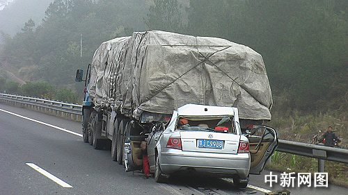 中新網麗水11月23日電(記者 江耘 通訊員 李正坤)今天早上8點44分,在龍麗高速往浙江龍游方向的66公里處發生一起車輛追尾重大交通事故,一輛轎車與一輛大型貨運車發生追尾,造成轎車上包括駕駛員在內的4名乘客當場死亡。