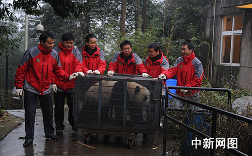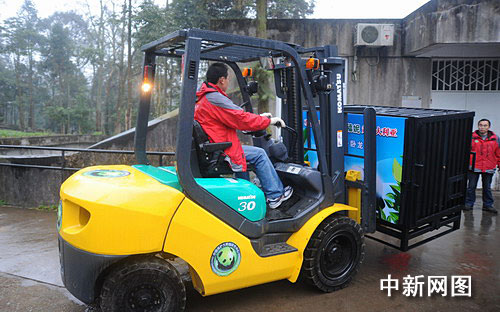 中新網成都11月27日電 (記者楊杰) 27日早上8時30分,在臥龍中國保護大熊貓研究中心白熊坪,工作人員一片忙碌,開始將赴澳大利亞的大熊貓“網網”、“福妮”裝籠,并送上卡車整裝待發。10時整,歡送“網網”、“福妮”儀式舉行,中澳雙方動物專家和相關官員出席。隨后,在家鄉人民祝福和不舍的目光中,車隊緩緩駛離雅安,前往成都雙流國際機場。