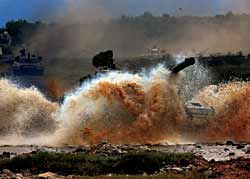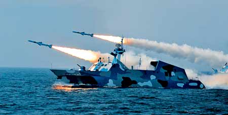 秋冬之交,各軍兵種按新大綱施訓進入高潮,實戰化、模擬化、基地化訓練扎實開展,復雜電磁環境下訓練迅速普及。被冠之以“xx—2009”代號的實兵演習此起彼伏,波瀾壯闊。北京軍區某旅探索現代城市進攻作戰,鐵甲部隊突入街衢樓宇;成都戰區探索陸空聯合戰術兵團訓練,空地一體鑄就“合璧雙劍”;南京軍區紅方加強裝甲旅快速機動,靈活向前;北海艦隊“海上狙擊手”劈波斬浪,在復雜海況中主動出擊;濟南軍區某紅軍師在“無形天網”中闖關奪隘,晝夜激戰……