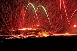 記者在演習(xí)現(xiàn)場(chǎng)看到,在某高地的爭(zhēng)奪戰(zhàn)中,紅藍(lán)雙方拼得異常激烈。拂曉剛過(guò),“藍(lán)軍”15架飛機(jī)從多個(gè)方向同時(shí)出現(xiàn)在“紅軍”空域,準(zhǔn)備對(duì)“紅軍”目標(biāo)同時(shí)發(fā)起攻擊。“紅軍”毫不示弱,偵察飛機(jī)主動(dòng)出擊,出其不意地對(duì)敵情報(bào)預(yù)警系統(tǒng)實(shí)施欺騙性干擾,與此同時(shí),“紅軍”空中攔截兵力強(qiáng)行突防飛抵目標(biāo)上空,朝敵機(jī)猛撲過(guò)去,為奪取局部制空權(quán),與敵機(jī)展開(kāi)了一場(chǎng)生死大戰(zhàn)。瞬間,方圓數(shù)百公里的戰(zhàn)場(chǎng)陡然升溫。爾后,“紅軍”空中轟炸機(jī)群多批次、多架次、不間斷對(duì)敵縱深目標(biāo)進(jìn)行持續(xù)轟炸,使敵指揮機(jī)構(gòu)、通信樞紐等重要目標(biāo)遭到癱瘓性打擊。