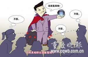 網(wǎng)友“華南虎” 如果浮躁曾被概括為世紀(jì)之交時的中國群體情緒征候,到了當(dāng)下,估計作為時代性標(biāo)簽的應(yīng)該是“不相信”,這種不信任感正成為新的時代群體情緒,成為思維定勢。網(wǎng)上常見的一條跟帖是:“不明真相群眾深度圍觀中……”