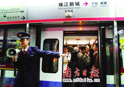 地鐵五號線開通首日即引發全城市民“瘋狂”追捧。筆者體驗,五號線從滘口至文沖全程需要60分鐘。開通首日,列車的準點率高,發車間隔大約5分半鐘,是廣州所有地鐵線路中開通初期發車間隔最短的。