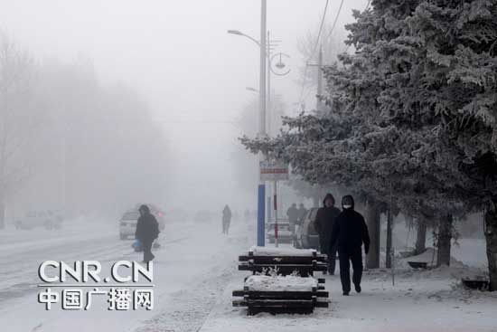 由于極端低溫,地面水蒸氣遇冷立即凝結,造成大霧天氣。惡劣天氣嚴重影響了人們出行。呼倫貝爾海拉爾區交巡警大隊副隊長李剛告訴記者:“現在全市每天有一半的警力上路,提醒所有車輛白天也必須打開車燈,強制車輛降速慢行。”(記者劉源源 呼倫貝爾臺記者左珍 馬麗君)