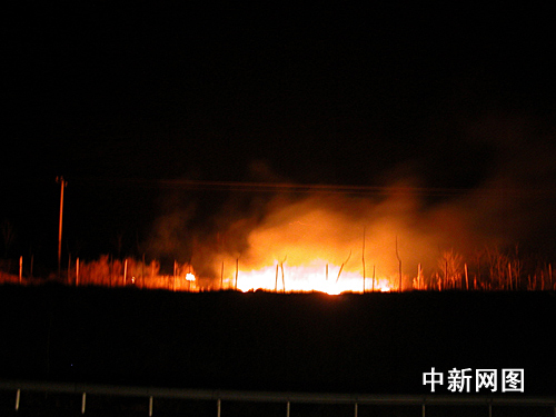 記者于下午5時30分接報后,立即向滿城縣官員進行了火情通報,并驅(qū)車沿京昆高速滿城收費站由北向南了解火情。只見京昆高速路西側(cè)連綿二、三十里的山頂已成了一條火帶。山上枯草、灌木等植被噼里啪啦的燃燒聲不絕于耳,火苗隨風(fēng)力忽大忽小。行進至順平境內(nèi),記者未見到山上有明火。