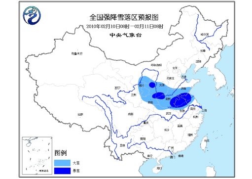 中新網2月10日電 中央氣象臺2月10日06時繼續發布暴雪黃色預警:預計,10日白天至夜間,內蒙古中部偏南地區、甘肅隴東地區、寧夏中東部、陜西中北部、山西中南部、河南大部、山東南部、安徽中北部、江蘇中北部等地有大雪(5~9毫米)。