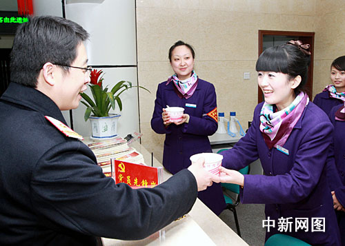 有旅客小心地把中國結放進行李箱里,也有旅客把布老虎系在背包上,氣氛一下熱烈起來,大家吃著熱氣騰騰的湯圓,你一言他一語的和工作人員拉起家常來:“你們也很辛苦,大過年的,還要給我們這些旅客服務,不能和家人團聚。”“哪里話,說真的,看到你們平安高興返家,我們比自己和家人團聚還高興。”