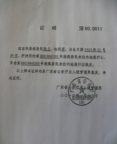 通行證換發證明:港澳居民因在內地辦理相關業務需要,可分別向香港、澳門中國旅行社申請辦理通行證換發證明(式樣見附件2、3)。該證明由廣東省公安廳出入境管理局統一出具,證明新通行證根據原通行證換發。