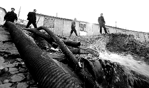 ●3月29日晚8時 4臺水泵安裝到位,開始抽水。