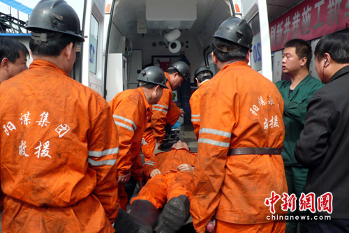 中新網山西鄉寧4月7日電(記者 符永康)記者在王家嶺礦透水事故救援現場看到,一位救援人員在下井前感到身體不適暈倒,被救護車接走。據了解,這名救援人員此前連續30個小時在井下參與救援。