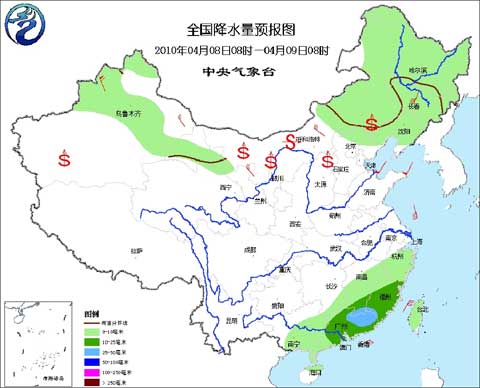 5日入侵我國的冷空氣南下之后,與南方暖濕氣流配合,并給南方大部送去了大量降雨。從3月28日至4月7日十天的全國降水量實況圖來看,江南、華南大部降水非常多,特別是湖南、江西、福建等省部分地區,累計雨量在100-200毫米之間。