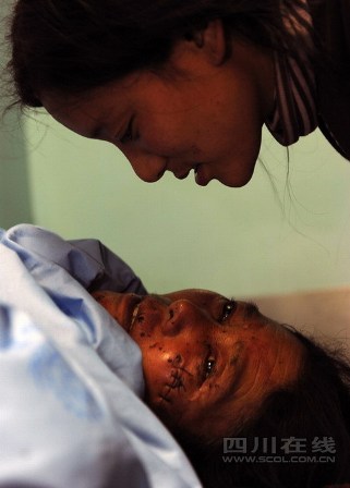 當滿載傷員的急救車隊飛馳在機場高速時,潘蓮英打開了手機,女兒牟元霞打來電話,“爸爸還好嘛?”“好!我們馬上就到醫院了。”躺在擔架上的牟炳學聽到女兒的問候,再也控制不住自己的情緒,眼淚順著布滿血痂的眼角不停流淌。
