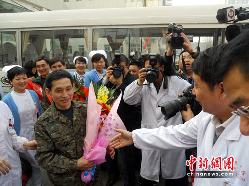 中新社太原4月16日電 題: 53名王家嶺獲救礦工出院 與山西醫護人員惜別